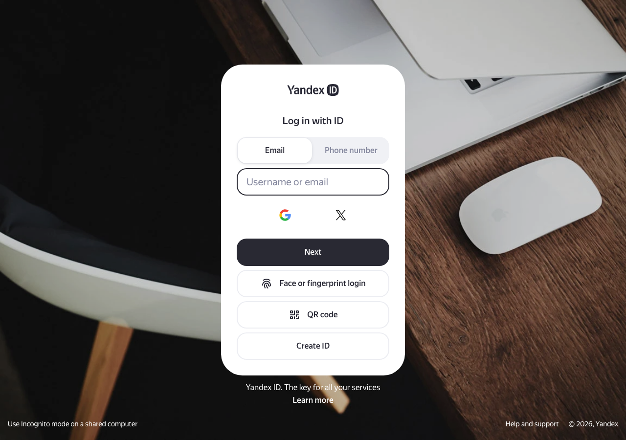为什么必须用 Yandex 账号? Yandex 的所有开发者工具(Webmaster、Metrica、Direct)都基于 Yandex Passport(Яндекс ID)统一身份体系,Gmail 等第三方账号只能访问部分功能,企业功能受限。